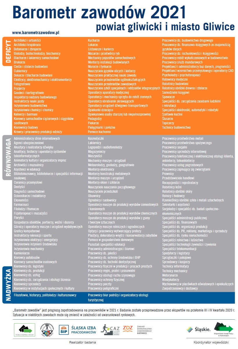 - Zapotrzebowania na konkretne zawody w Gliwicach i powiecie gliwickim.