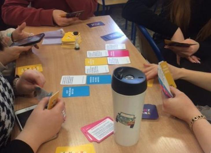 Klasa 2AT świetnie się bawiła a zarazem poszerzała wiedzę podczas lekcji wychowawczych m.in. realizując tematy „Organizacje społeczne - fakty i mity”, „Młodzieżowy Strajk Klimatyczny” oraz bawiąc się grą karcianą „Włącz szkołę”.