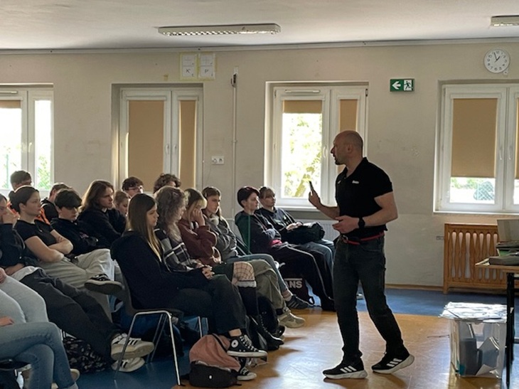 Podczas spotkania dowiedzieliśmy się jak wygląda rzeczywistość niepełnosprawnych, z czym mierzą się na co dzień. Uczyliśmy się jak skutecznie pomagać osobom niewidomym bez narażania ich na niebezpieczeństwo i wprawiania w zakłopotanie. Rozwiane zostały mity dotyczące funkcjonowania osób niewidomych. Pan Marcin pomimo swojej niepełnosprawności jest bardzo aktywny, bierze udział w maratonach na całym świecie. Jest „biegaczem, który nie widzi przeszkód”. Dzięki determinacji i otwartości znalazł miejsce w pracy i życiu społecznym. To przykład na to, jak różnorodność wzbogaca nasze doświadczenia i otwiera nowe możliwości.